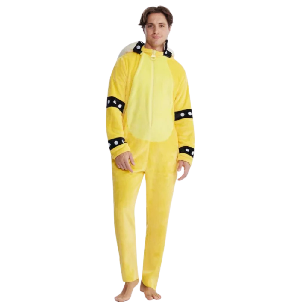 ¡Conviértete en el rey de los villanos del Reino Champiñón con este increíble kigurumi de Bowser! Ideal para fans de Super Mario, este enterizo cómodo y llamativo mezcla lo mejor del mundo gamer con la comodidad del estilo kawaii y geek.