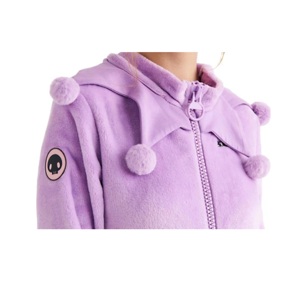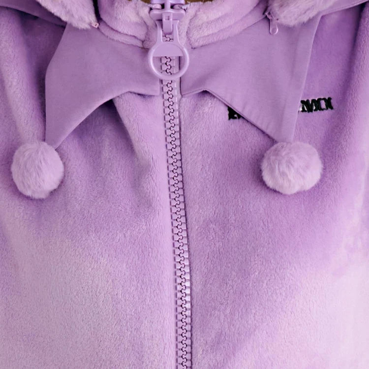 ¡Conviértete en la villana más adorable de Sanrio con este Kigurumi de Kuromi! Perfecto para dormir, descansar en casa o destacar en una pijamada, este enterizo ultra cómodo es tan suave como kawaii 💜.