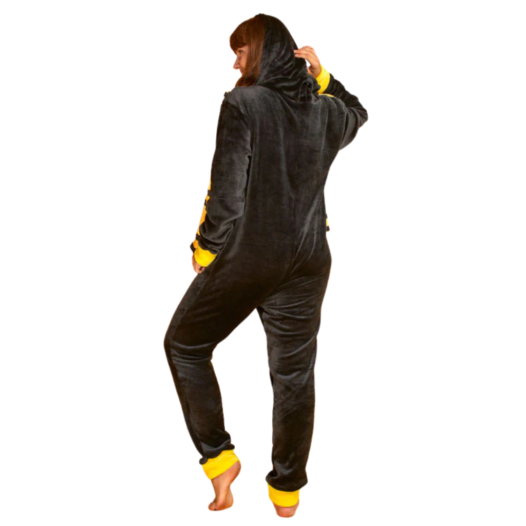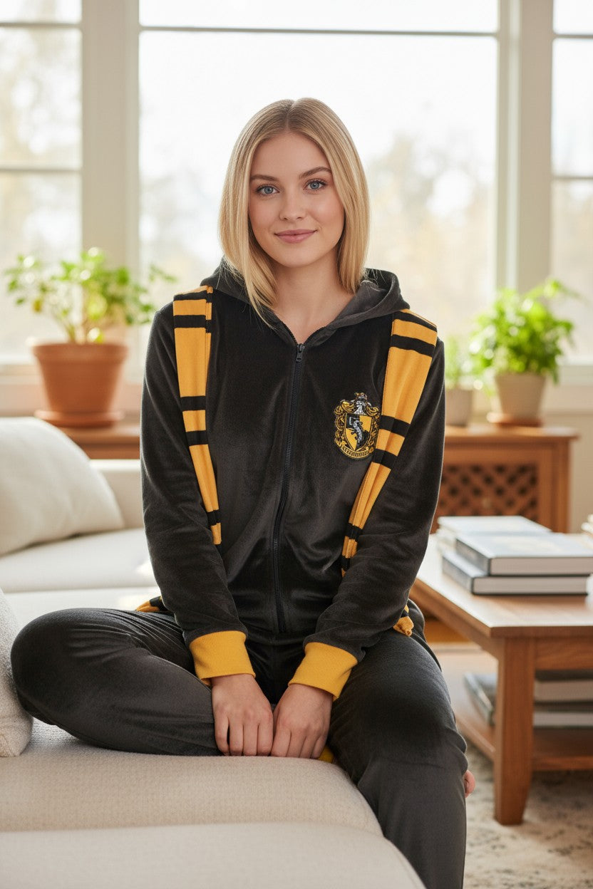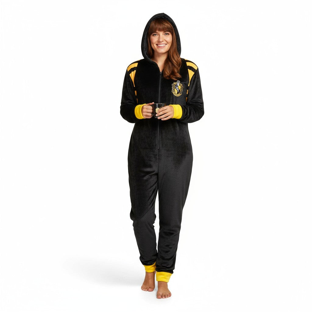 ¡Comodidad 100 % mágica! Si tu casa de Hogwarts es Hufflepuff, este pijama mameluco con capucha es el uniforme perfecto para tus aventuras nocturnas, sesiones de películas o días de descanso dignos del salón común más acogedor del castillo.