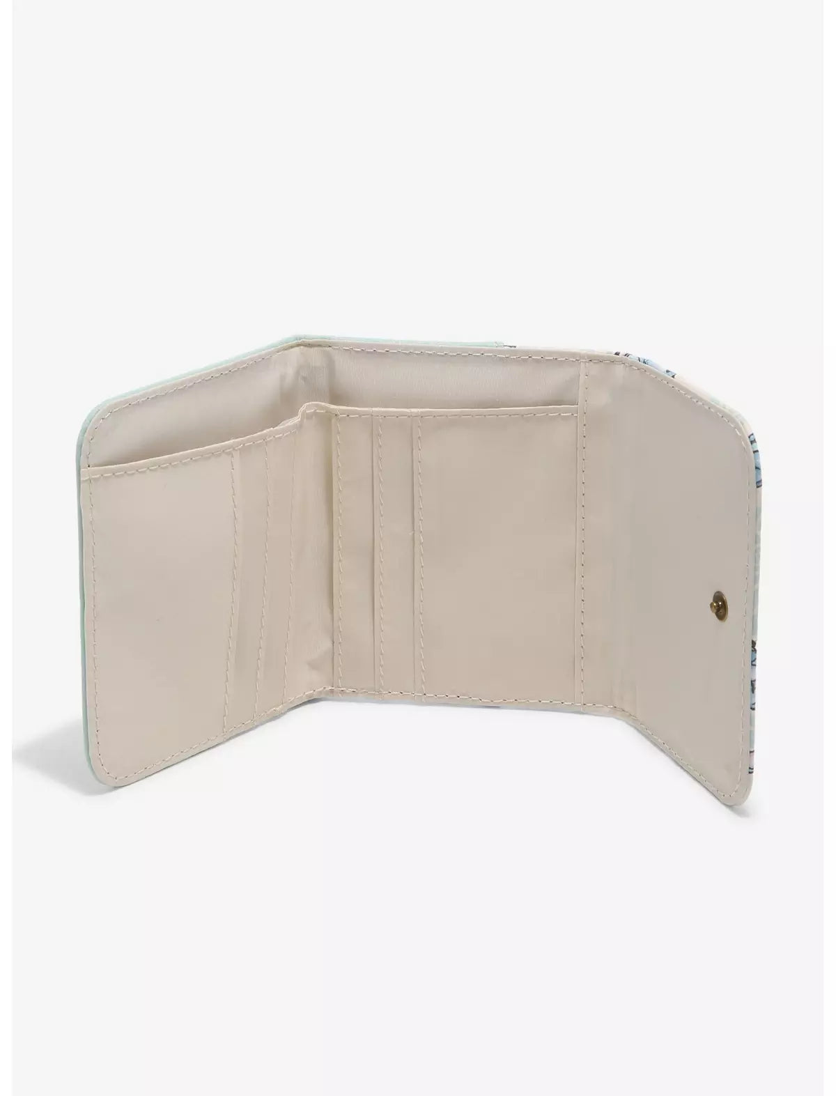 ¿Vas de viaje con tu ohana? ¡Guarda tus tarjetas y dinero en esta minicartera! Con un estampado integral de Stitch en diferentes poses y un fondo de hojas tropicales. Incluye billetera y 6 ranuras para tarjetas, con cierre de botón a presión.