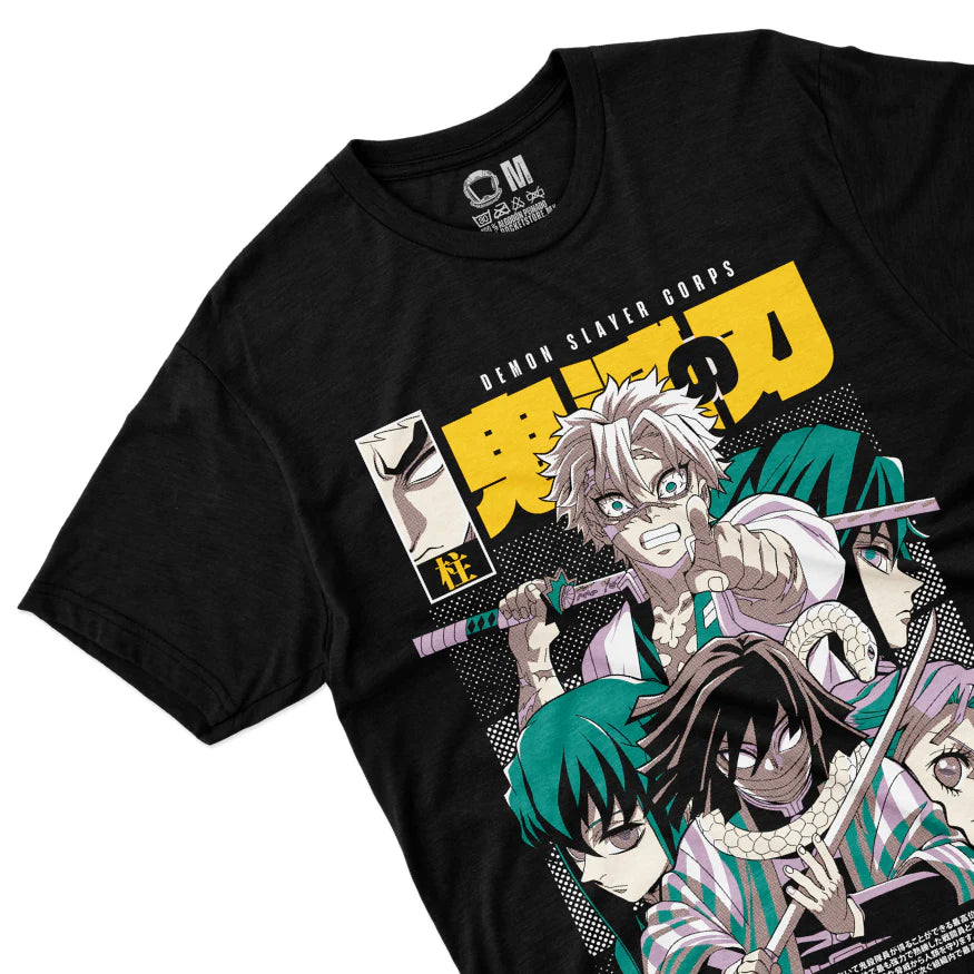 Pelea con honor. Protege a la humanidad. Esta playera está dedicada al Demon Slayer Corps, la legendaria organización que lucha contra los demonios en Kimetsu no Yaiba. Con un diseño sobrio pero poderoso, representa el valor, la disciplina y el legado de los cazadores de demonios.