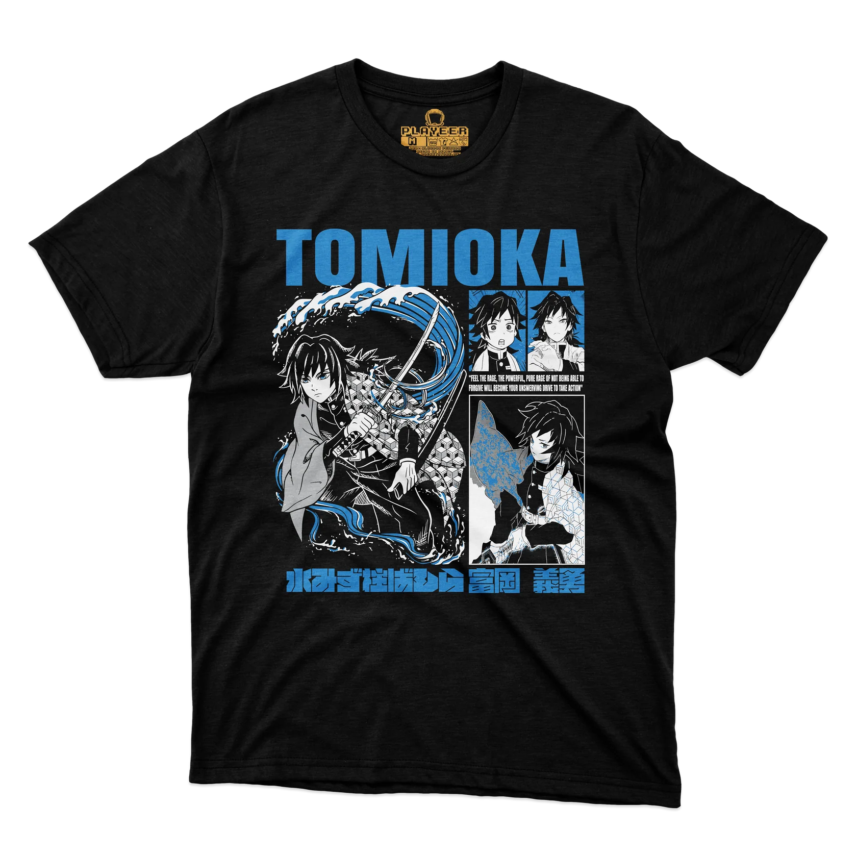 Sereno, letal y siempre firme. Esta playera rinde tributo a Giyu Tomioka, el poderoso y reservado Pilar del Agua del universo Demon Slayer. Su diseño representa la fluidez y fuerza de las técnicas de respiración acuática, ideal para quienes valoran la calma en medio del caos.
